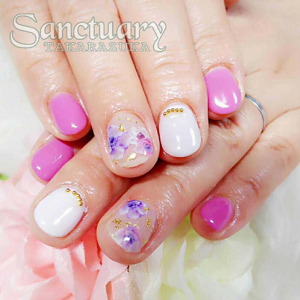 宝塚のネイルサロン・サンクチュアリは、自爪を守る安心安全な技術。ワンカラー・グラデーションなどのシンプルネイルから最新トレンドアートまで、定額料金でご提供します。短い爪でお悩みの方も似合うデザインで素敵に仕上がりますので、お気軽にご相談ください。フットネイルも好評です。宝塚市でジェルネイルするならネイルサロン・サンクチュアリへお越しください。